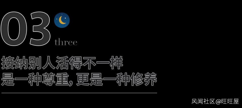 接受別人的“不喜歡”,接納別人不一樣的活法,對他人而言是一種尊重,對自己而言則是一種修養。畢竟,和而不同,才能美美與共。我們每個人,都有選擇自己嚮往生活的權力。除了一個人自身,沒人可以幫Ta做出選擇。我們渴求世界允許自己的差異,能夠特立獨行;也要允許別人的不同,能夠百家爭鳴。一個真正成熟的人,就在於能夠尊重別人的自由選擇。