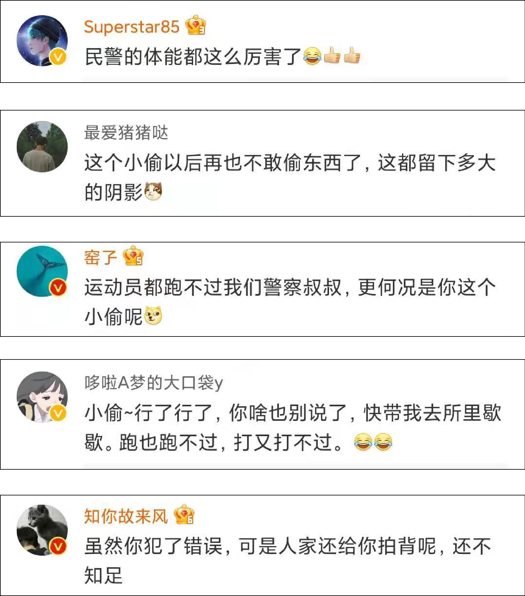 如今,威海民警更是奔襲三公里將小偷追到崩潰嘔吐,又一次向網友們證明了人民警察的強大實力。
