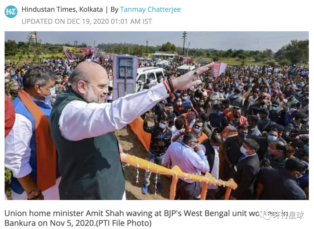 印度總理莫迪也親自參加了選民集會併發言拉票,而且並未戴口罩。