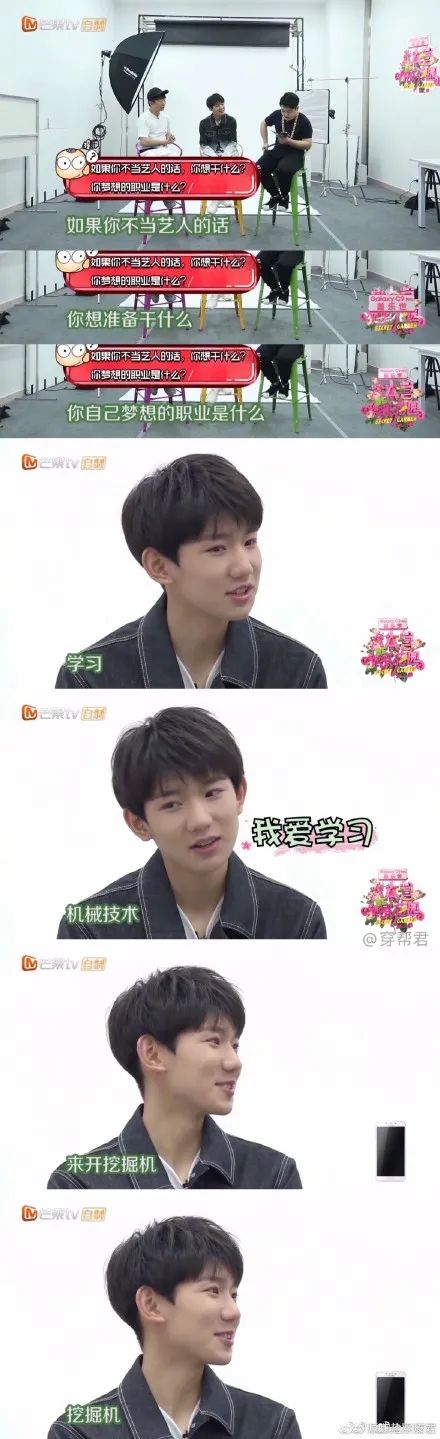 王俊凱説小時候爺爺天天把他頂在肩膀上去看挖掘機。