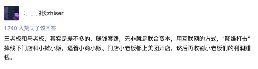 接着,是對於美團這家公司的全面批判,簡單來説就是“你一個靠剝削外賣小哥活着的公司,哪裏來的勇氣嘲諷華為?”
