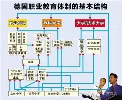德國大部分初中生畢業後都選擇進行“雙元制”職業教育,一般是3年或者3年半,這種教育由學校和企業共同開展,學校教文化和理論,企業教實踐,兩者比例大概3:7。