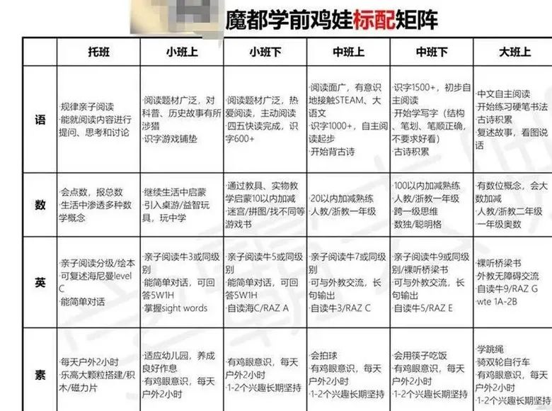 進羣應該達到啥標準呢?這是一份上海學前雞娃的標配。