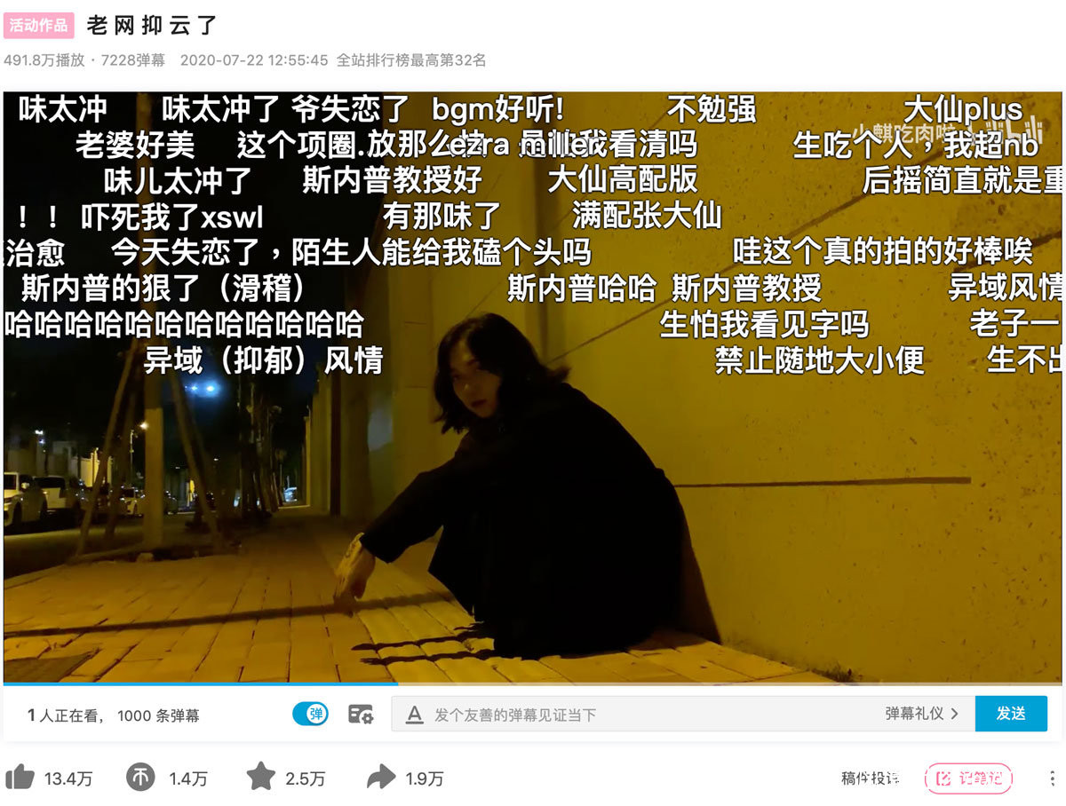 比如這位UP主在B站播放量最高的視頻,是2020年7月發佈的《老 網 抑 雲 了》。