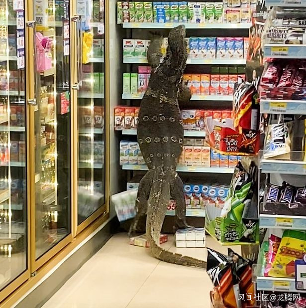 超市裏一隻6英尺長的蜥蜴爬上貨架,購物者驚呆了_風聞