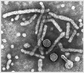 電鏡下的乙肝病毒,以及不具有感染性的S蛋白顆粒