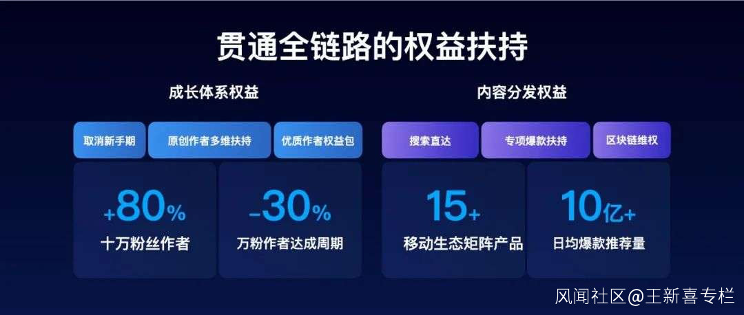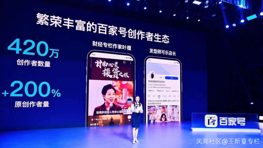 根據百家號總經理楊瀠在大會上透露:“百度已打造了全鏈路的權益扶持體系,去年取消了新手期,優質的作者入駐之後即可享受分潤,針對優質內容,提供了專項爆款扶持,日均爆款推薦量高達10億。10萬粉作者同比增長80%,萬粉作者的達成周期縮短了30%。”