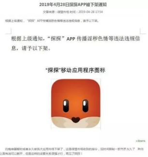 終於沒過多久,探探在各大安卓應用市場遭到下架。據傳下架原因是傳播淫穢色情等違規違法信息,並且未設下架時間限制。