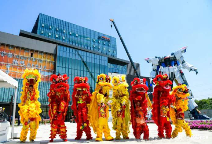 值得一提的是,高達立像“上頭”的安全祈願儀式現場,主辦方還特意請來中國舞獅助興。