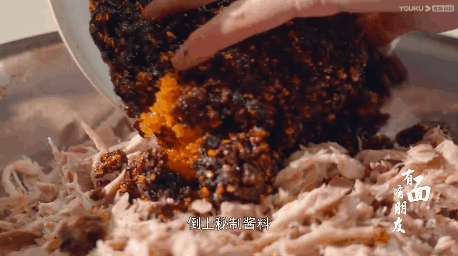 兔子肉撕成絲,和秘製的醬料一起攪拌均勻,那口感吃起來就是一個字,辣。