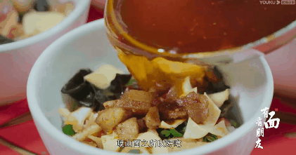 紅彤彤的臊子散發着誘人的香氣,澆到面上,油香和麪香混合在一起,光是那股味就能讓食客們垂涎欲滴。