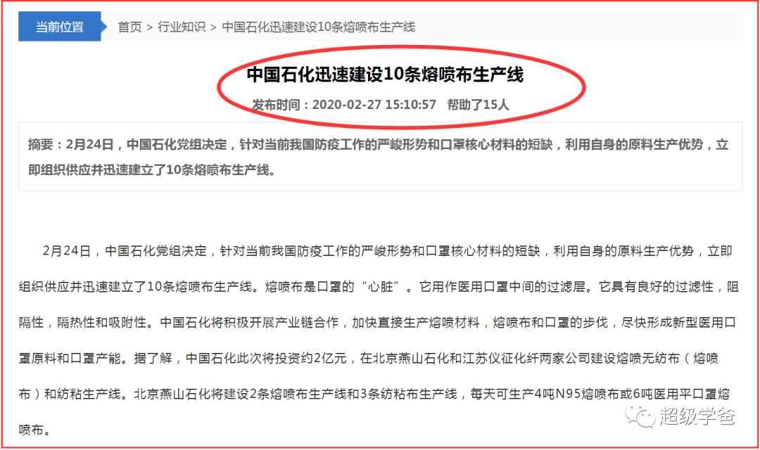 比如造汽車的(比亞迪和五菱)、造飛機的(殲20孃家)、造高鐵的,都迅速開發出了口罩機生產線,中國石化迅速研發出了熔噴布生產線。