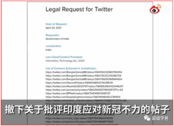 所以印度的情形比官方公佈的要嚴重的多。也因此,印度政府被迫採取了史上最強而有效的措施——刪帖,要求推特等平台刪除不利報道。