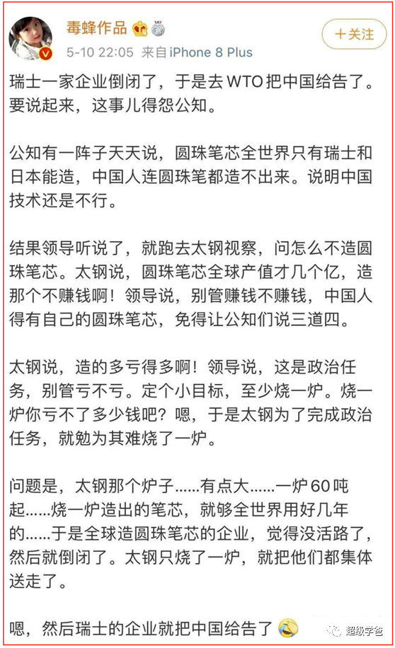 結果太鋼一爐出來60噸,夠全世界用好幾年,據説把瑞士那幾家鋼珠企業就送走了,走得很安詳,現在家屬還在WTO哭鬧告狀呢。