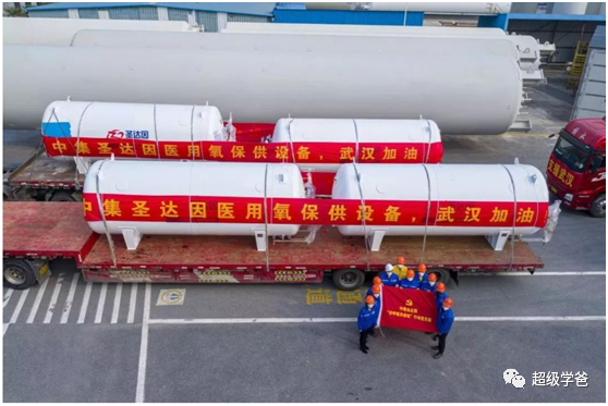其中最緊急的是武漢金銀潭醫院,中集聖達因僅用48小時就將兩台醫用液氧儲罐送到了武漢,然後馬上安裝調試,投入使用。