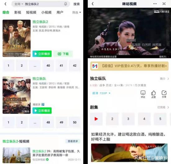 愛奇藝的視頻/小説小程序現在已經擁有千萬級月活、百萬級月付費GMV,接入咪咕視頻等小程序,讓愛奇藝擺脱因為資源等問題導致的用户流失現象,實現了用户留存時長的增長(圖:在愛奇藝搜索某影視劇,直接進入對應的小程序播放):