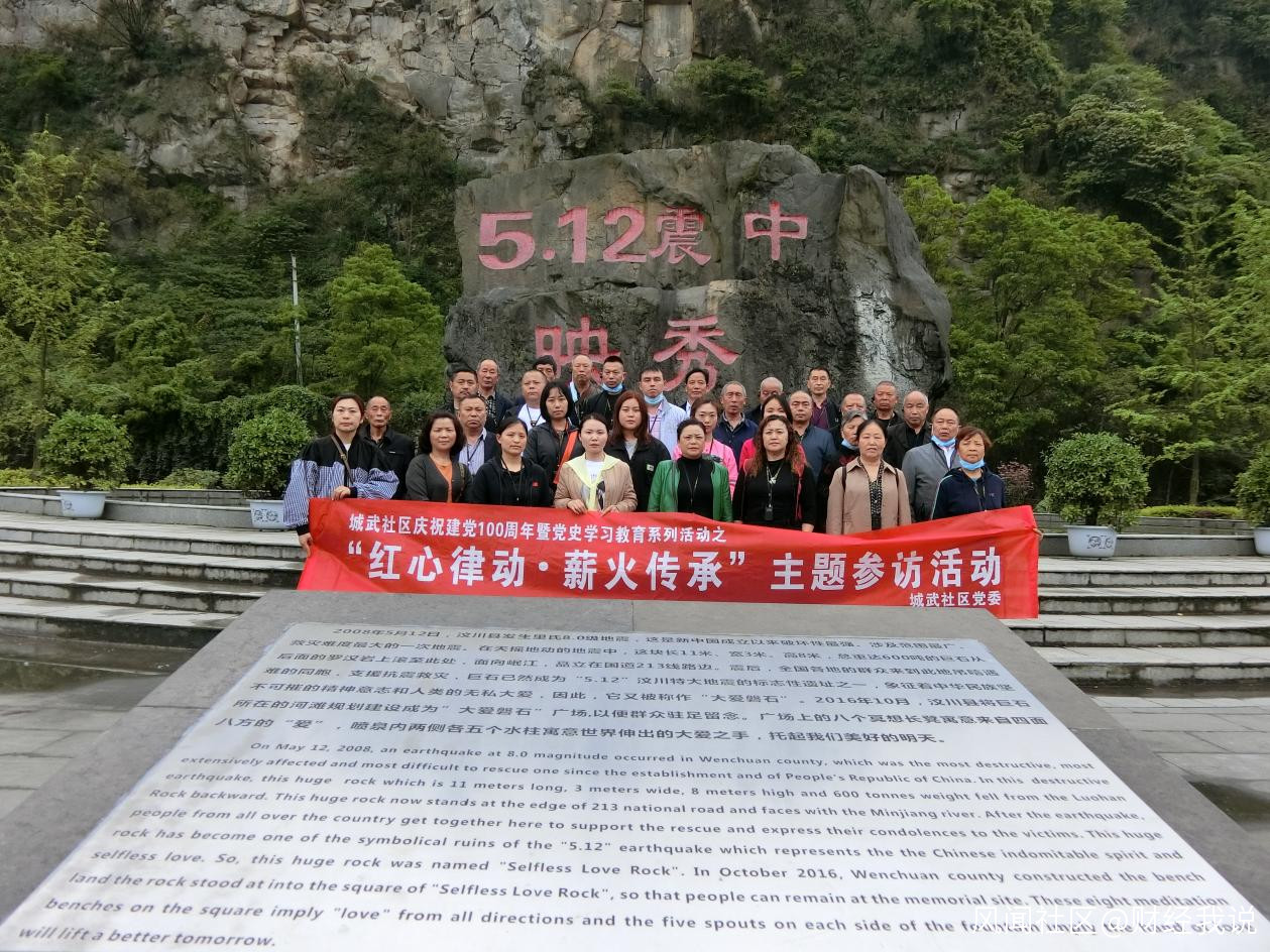 4月24日,永寧街道城武社區組織社區幹部、黨員骨幹來到映秀愛國主義教育基地,開展慶祝建黨100週年暨黨史學習系列活動之——“紅心律動·薪火傳承”主題參訪活動。