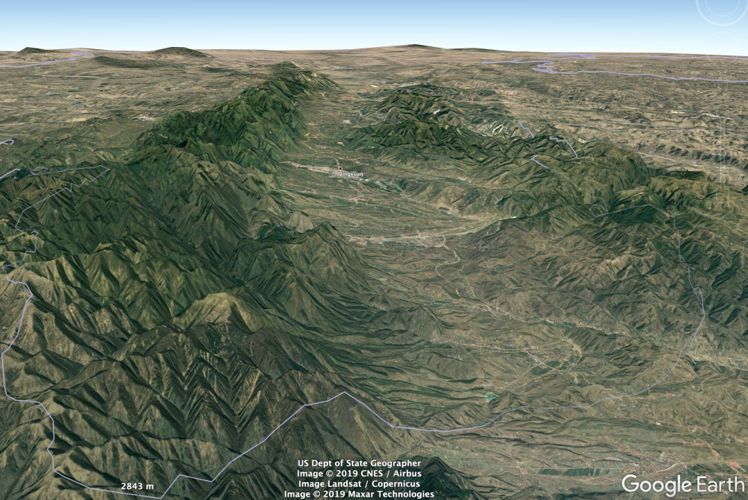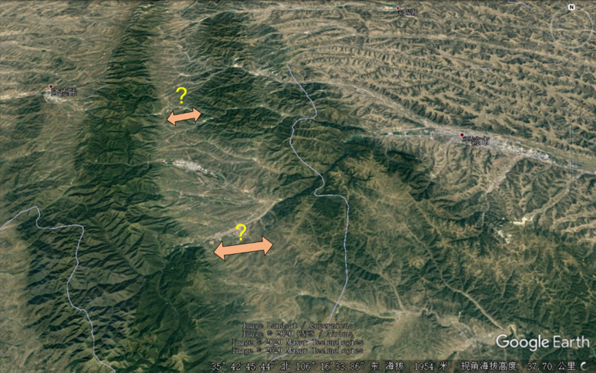 六盤山的地形是東南-西北走向的兩個主山脊,兩個山脊中間被高速路穿越而過,並且分佈着面積不小的居民區和農田,將六盤山保護區分為了東、西兩個區域。
