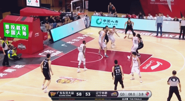 **核心球員犯規多,陣容輪換被徹底打亂,讓遼寧隊場上出現了嚴重的默契不足。**第一節3分09秒,郭艾倫面對趙睿的死貼,沒有做出擋拆,24秒違例;而在第一節5分21秒,遼寧隊甚至出現一次發球5秒違例。