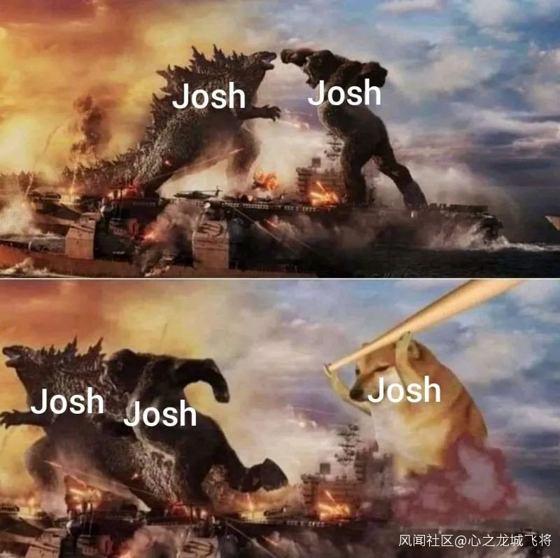 羣架開始前,玩梗造勢不能輸啊!於是,“Josh之戰”前,“meme大戰”率先上演: