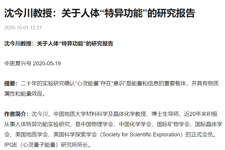 其中,除了沈今川教授;還有2011年共同撰寫《中華傳統文化和超心理學研究》一書的主編宮哲兵,副主編朱念麟;以及與郭校長一起發表“熟蛋返生”論文的河南省中西醫結合主任醫師白衞雲。