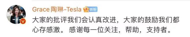 曾引熱議的特斯拉全球副總裁陶琳,也轉發評論稱“認真改進”“心存感激”。