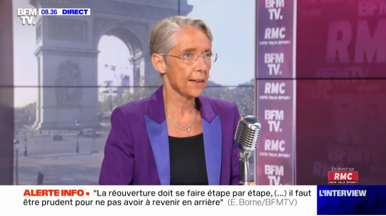 今日上午法國勞工部長伊麗莎白·波恩(Elisabeth Borne)做客BFMTV。談重新開放,她表示一定要“小心”,並且要“一步步”進行,如果有必要,可以採取“分區進行”。
