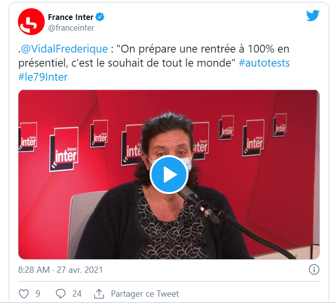 高等教育部長弗雷德裏克·維達爾(FRÉDÉRIQUE VIDAL)週二早上宣佈,希望可以和政府一起準備在9月份讓大學可以100%面對面授課。目前,當局希望在5月中或者5月底,大學可以保持50%的面對面授課。