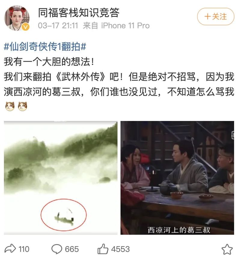 前段時間,盛傳《仙劍奇俠傳一》翻拍,網友直呼:既然都要翻拍了,不如把武林外傳也翻拍了吧,還自發出演西涼河上的葛三叔。