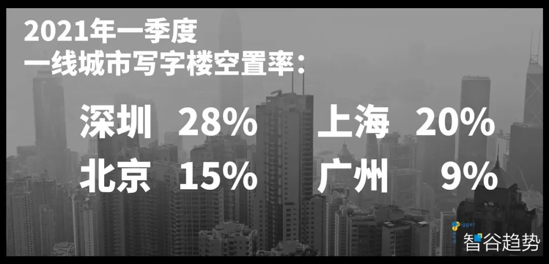 同樣是一季度,深圳寫字樓空置率也是四個一線之首。深圳前海有內地最密集的摩天大樓,也有夜晚最斑駁的窗。