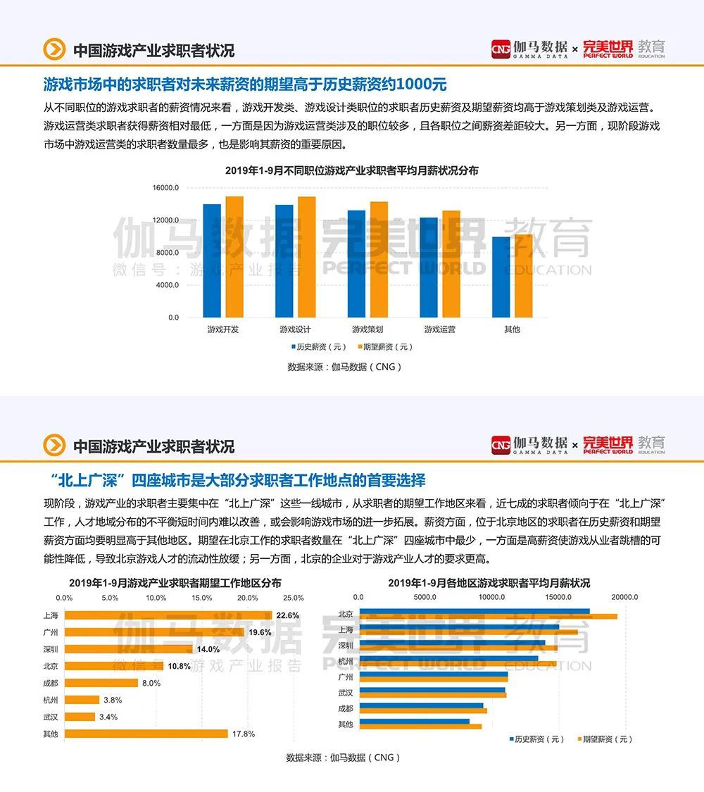 根據完美世界教育研究院&伽馬數據發佈《中國遊戲產業職位狀況及薪資調查報告》的數據,2019年,位於北京地區的遊戲行業求職者平均歷史薪資超過1.7萬元,期望薪資接近2萬元。而即便是在其他地區,遊戲行業求職者的平均歷史薪資也在8000元以上。