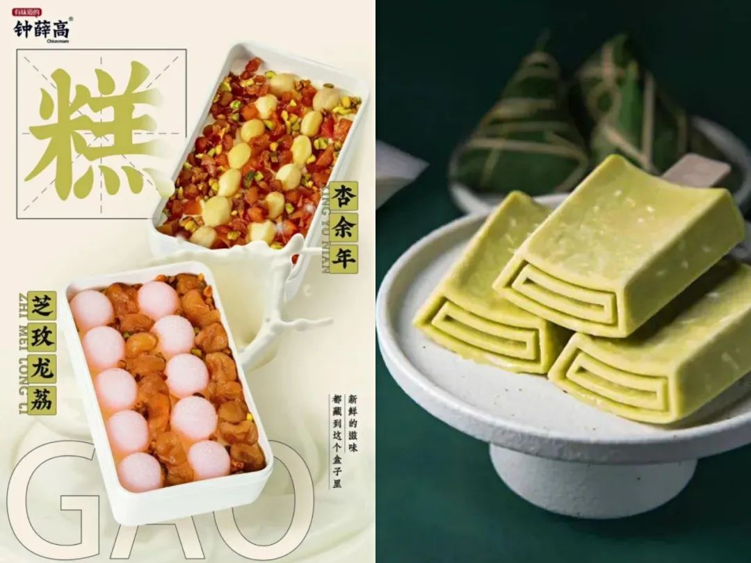 繼2020年11月推出理象國之後,近日,鍾薛高又發佈了兩款名為“杏餘年”和“芝玫龍荔”的新品,名為“鍾薛高的糕”。