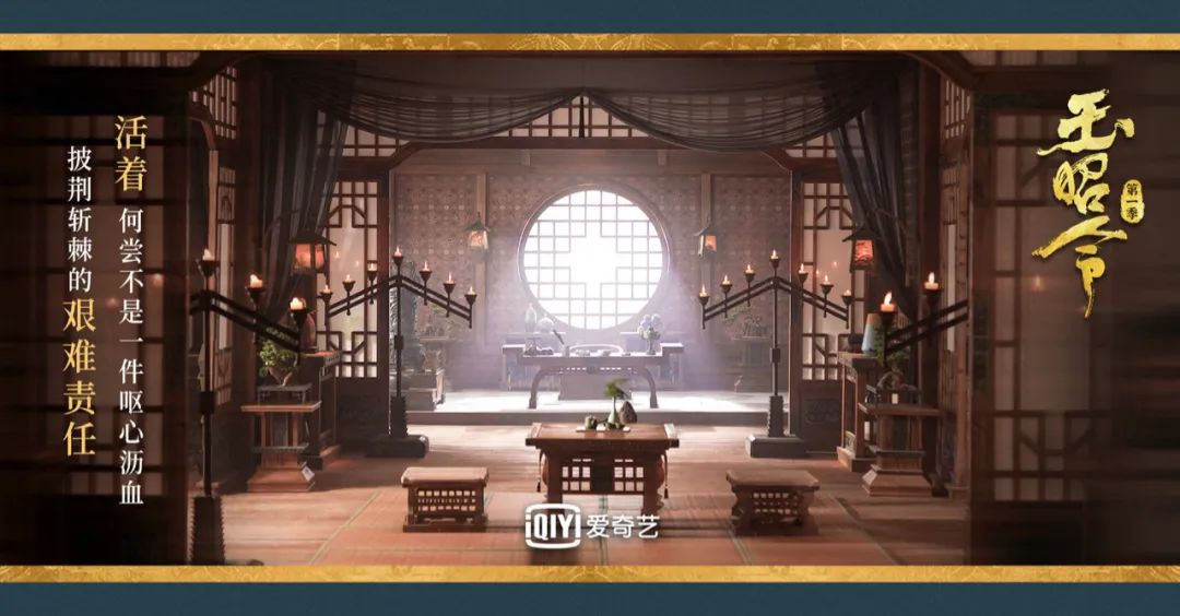 在整體構圖方面,《玉昭令》在儀式、置景、畫面質感和鏡頭調度上儘量從藝術創作的角度出發考慮,整體色調也貼合着劇情的發展。