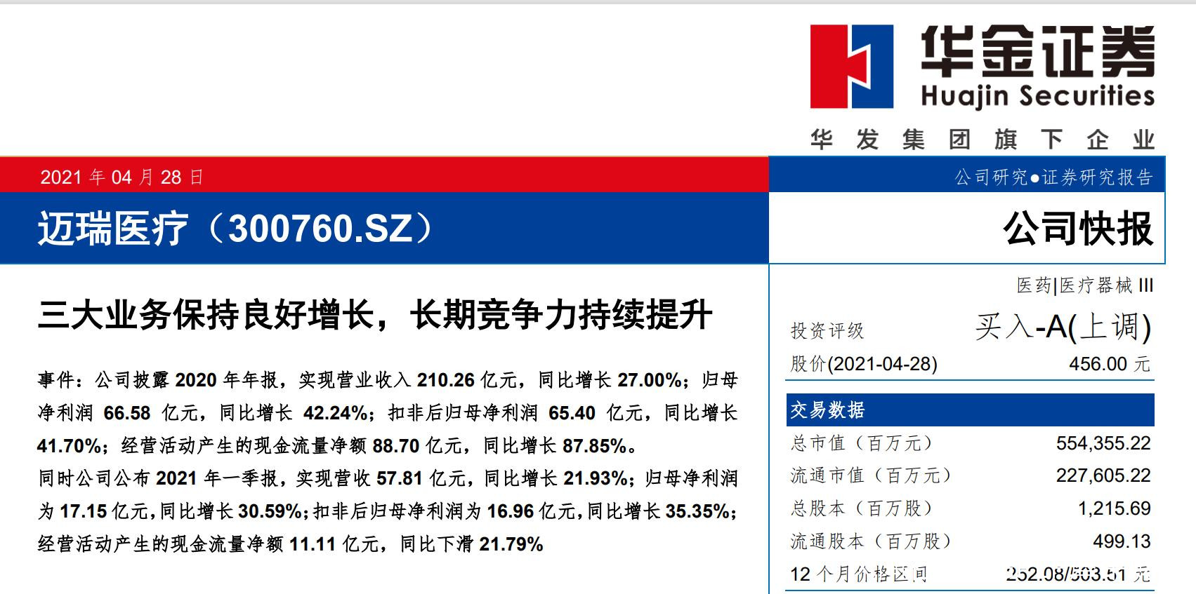 超預期年報及一季報讓邁瑞醫療獲得了多家券商一致認可。