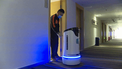 進入客房後人感開關將自動開啓燈光等設備,並結合內外部環境自動調節空調參數。未來還將提供機器人酒店送餐、送毛巾牙刷服務。