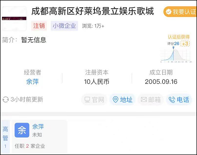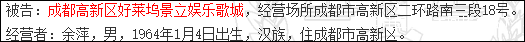 但是,根據中國文書網2017年11月17日公佈的一封民事裁定書,成都高新區好萊塢景立娛樂歌城經營者仍顯示為餘萍。