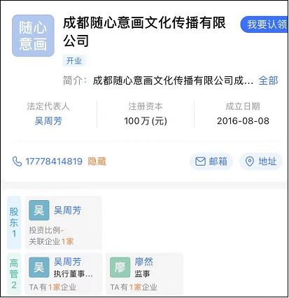 首先,該網友查到了餘景天哥哥所開辦的畫室,並確認了其母親李勤的身份。雖然該公司現在的投資人另有其人,但2017年8月23日的變更記錄顯示,李勤曾擔任該公司投資人和聯繫人。