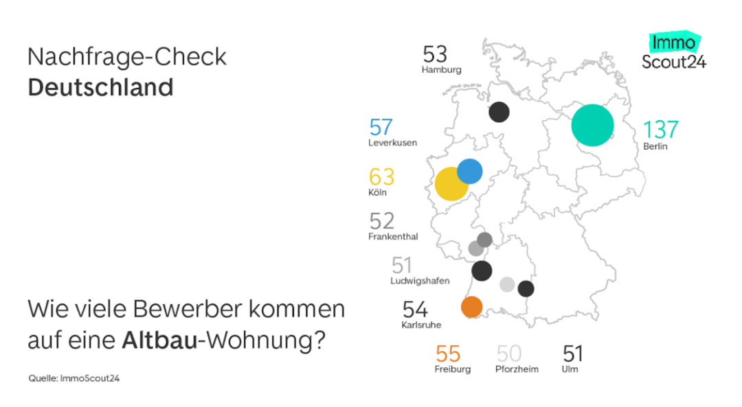 ● 德國各州一套舊公寓的平均申請競爭者人數 / 網頁截圖