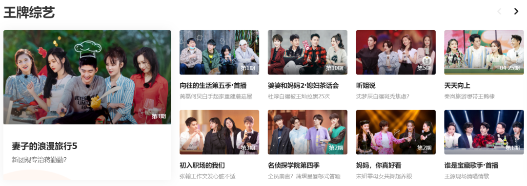 2016年,搭載網綜井噴的東風,芒果TV的自制業務實現突破,推出了《明星大偵探》等爆款。除了硬核推理類主打網感的綜藝,依託於湖南廣電強勢的藝人資源,婚戀家庭等觀察類綜藝也屬芒果TV比較穩定的一支類型軍。