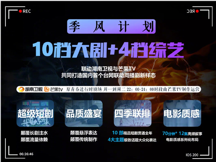 官方説法是:該劇場將聯合湖南衞視與芒果TV雙平台,集結影視行業頂尖人才,聚合“傳統電視+視頻平台+頂尖製作”強大勢能,用十部短劇貫通全年,題材不限於懸疑,也包括婚戀等現實題材。