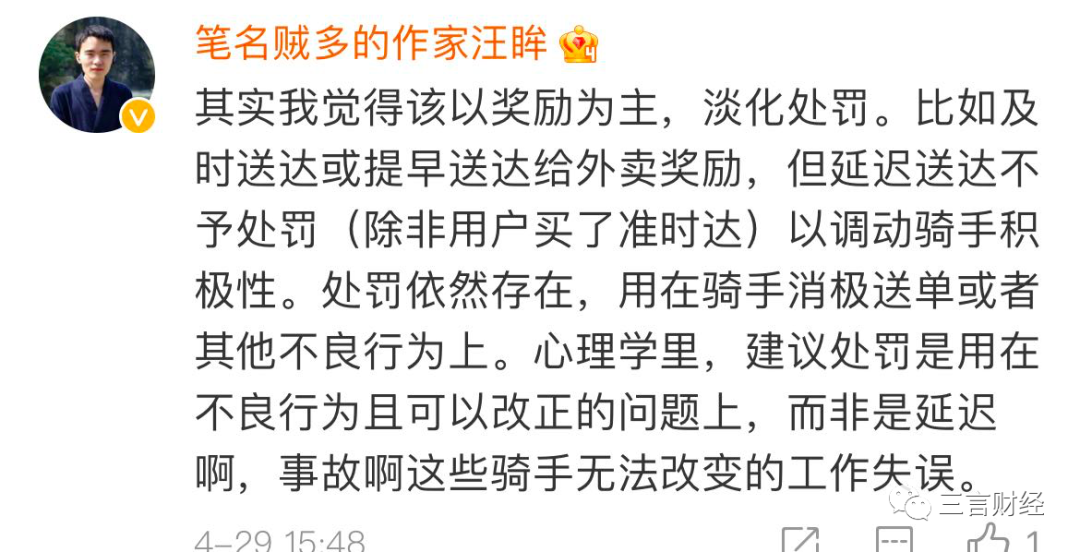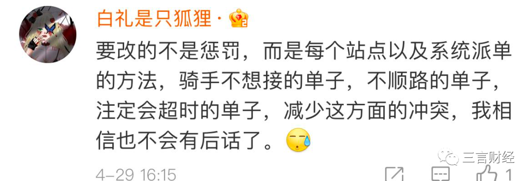 也有網友提出建議,有人認為應該改變原有的懲罰手段,着重在獎勵上,淡化處罰,調動騎手積極性。