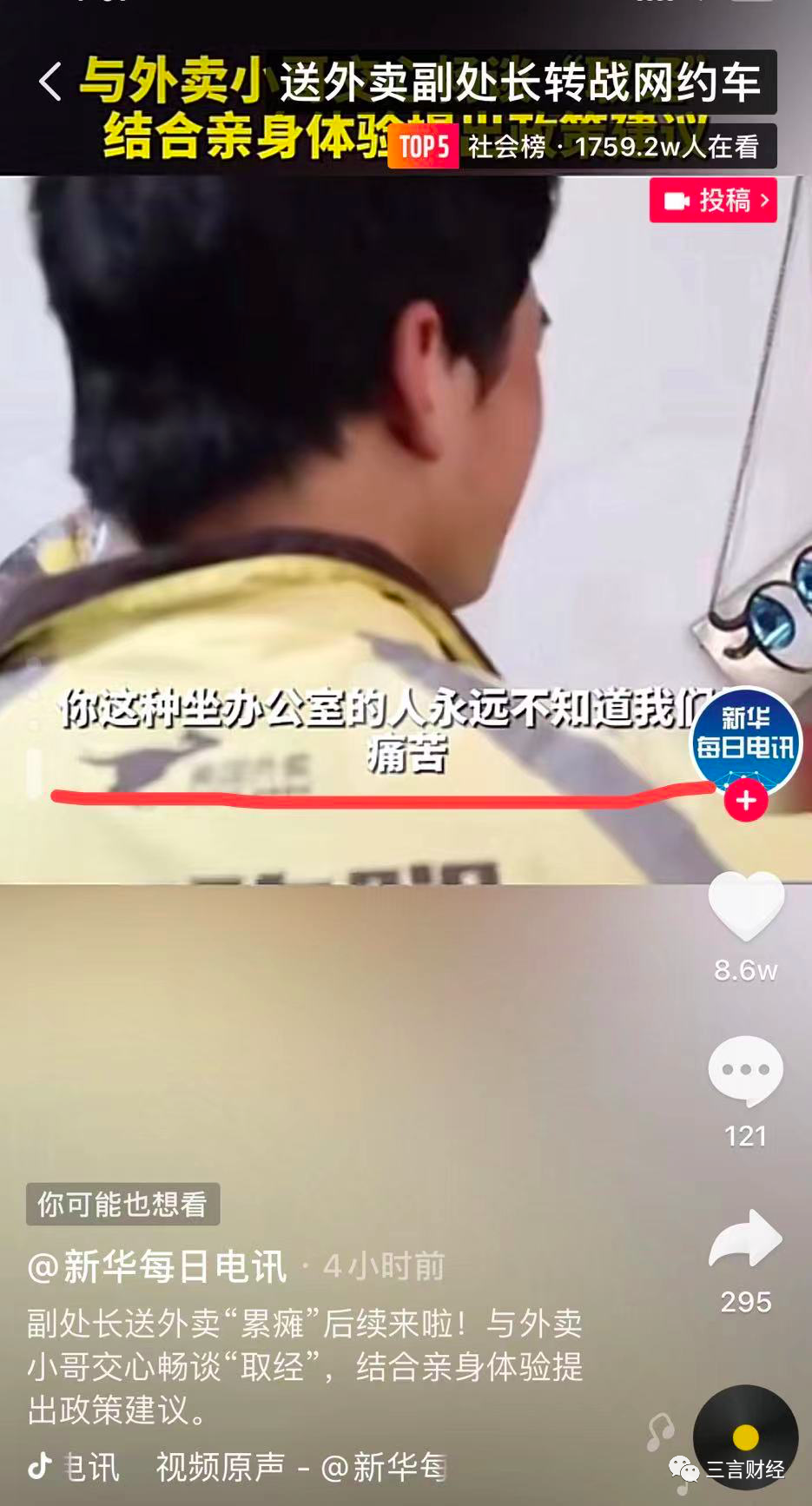 這次的副處長“變形記”,讓外界進一步認識了騎手們和網約車司機的艱辛,也暴露出他們工作中所面臨的壓力和困難,這也是引發大眾共鳴的核心所在。
