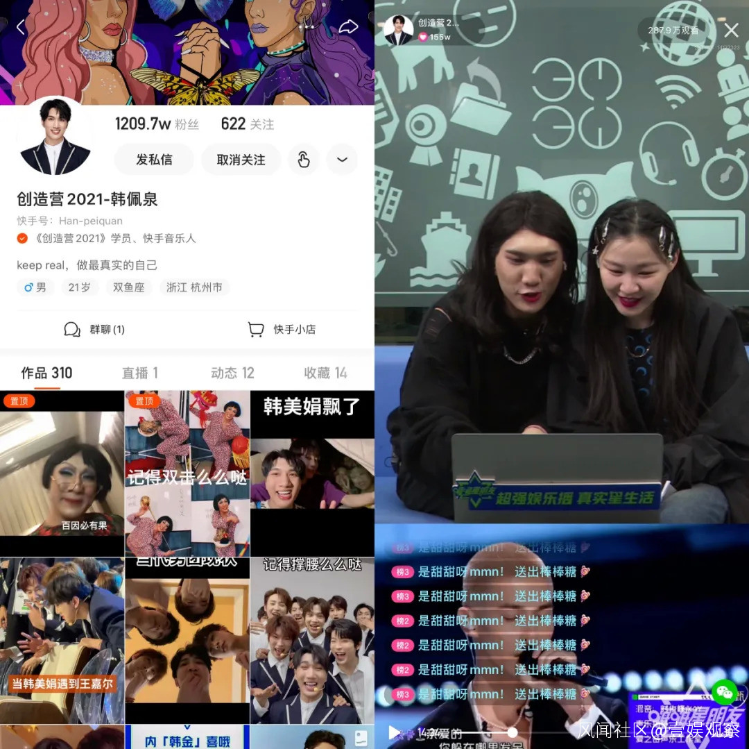 與此同時,《創造營2021》的熱度吸引快手站內不同圈層的用户加入互動,不僅限於傳統意義上的“秀芬們”。