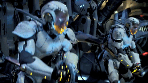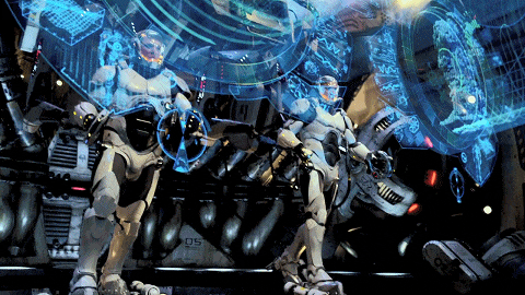 反觀《雷霆再起》中的機甲,它們似乎都“變形金剛化”了:它們的動作讓人感受不到重量,它們的奔跑不再需要賣力蹬腿,它們的駕駛艙也變得更“未來化”,駕駛員能輕易地帶動機甲騰空。