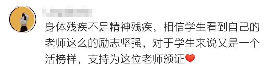 “如果説學校能有一個這樣的老師,對我們這些(殘疾)孩子來説,他們會覺得我雖然某些方面可能有點缺陷,但是我未來仍然可以有所成就,因為孩子對老師的那種崇拜,對這些孩子是一個很大的激勵。”