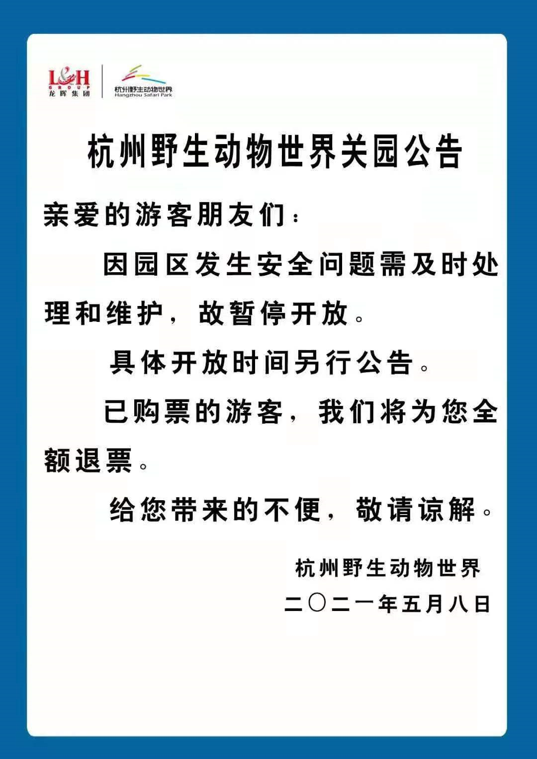 今天早些時候杭州野生動物世界發佈的閉園通知,現已刪除 圖源網絡