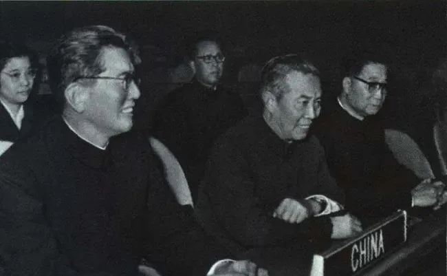▓ 以喬冠華為團長、黃華為副團長的中華人民共和國代表團在聯合國大會全體會議上。