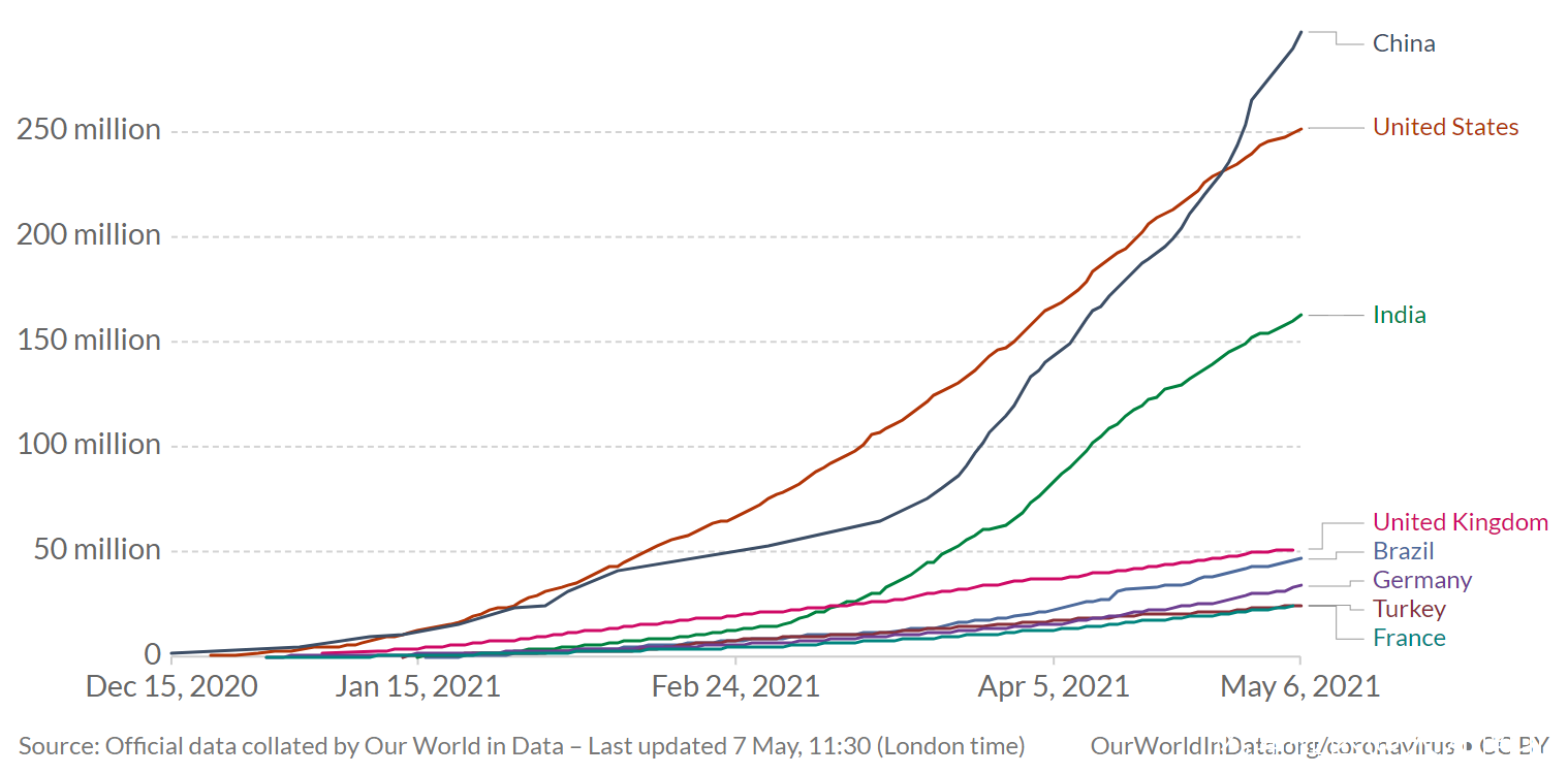 5月8日全球新冠疫情及疫苗接種更新:印度新增確診破40萬例 中國累計接種破3億_風聞