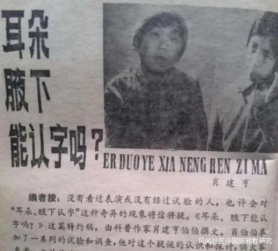 上世紀70年代末,“耳朵認字”的相關報道。1981年10月9日到10日,由國家科委政策研究室出面,召開了“尊重科學,弄清真相”的人體特異功能問題座談會,會上,由國家科委政策研究室、中國科學院政策研究室和中國自然辯證法研究會共同發起建立了“人體特異功能問題調查研究聯絡組”,由我擔任該調查組的負責人,負責對“特異功能人”進行具體的調查實驗。