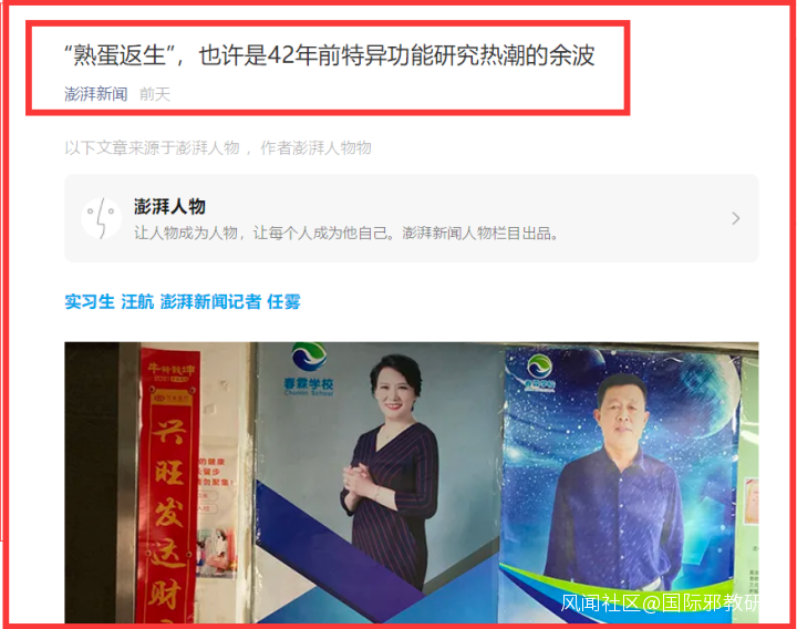 澎湃新聞:特異功能熱潮的影響範圍也很大。